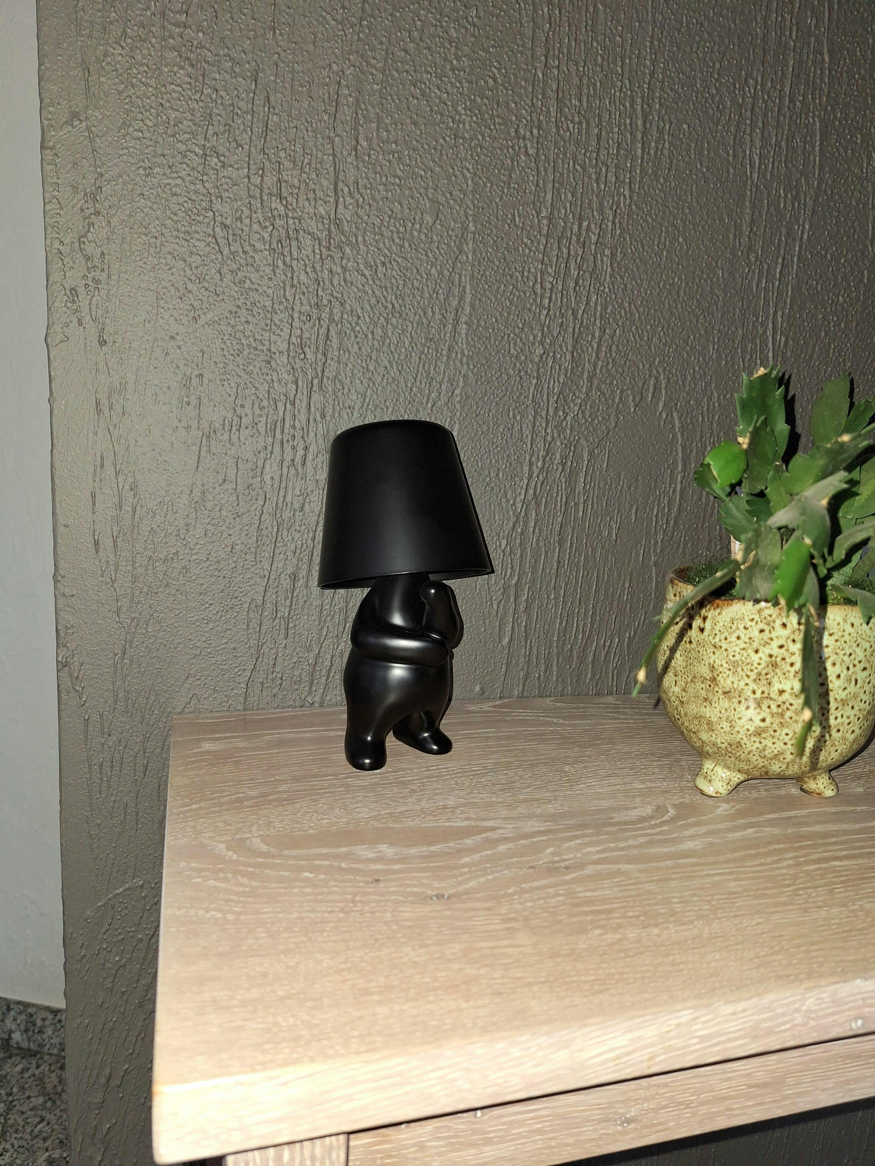 Die Tischleuchte „Bins Brother“ von Luxus ist eine auffällige und verspielte Dekoleuchte , die jedem Raum sofort ein besonderes Ambiente verleiht. Dank des integrierten Akkus ist sie kabellos aufladbar und lässt sich daher flexibel platzieren – ideal als Tischleuchte im Schlafzimmer , auf dem Schreibtisch oder im Wohnzimmer. Die Bedienung erfolgt ganz einfach über einen Touch-Knopf im Leuchtenkopf mit dem kultigen kleinen Männchen-Design.