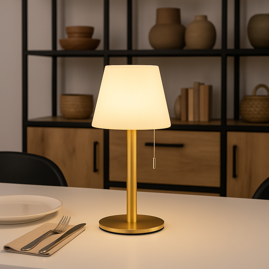 Die Tischleuchte Billy ist eine moderne und dekorative Leuchte, die stimmungsvolles Licht mit einfacher Bedienung vereint. Sie eignet sich perfekt als Tischleuchte im Schlafzimmer , Wohnzimmer oder auf der Terrasse. Dank des integrierten Akkus ist Billy kabellos aufladbar und kann überall platziert werden – ganz ohne lästige Kabel.