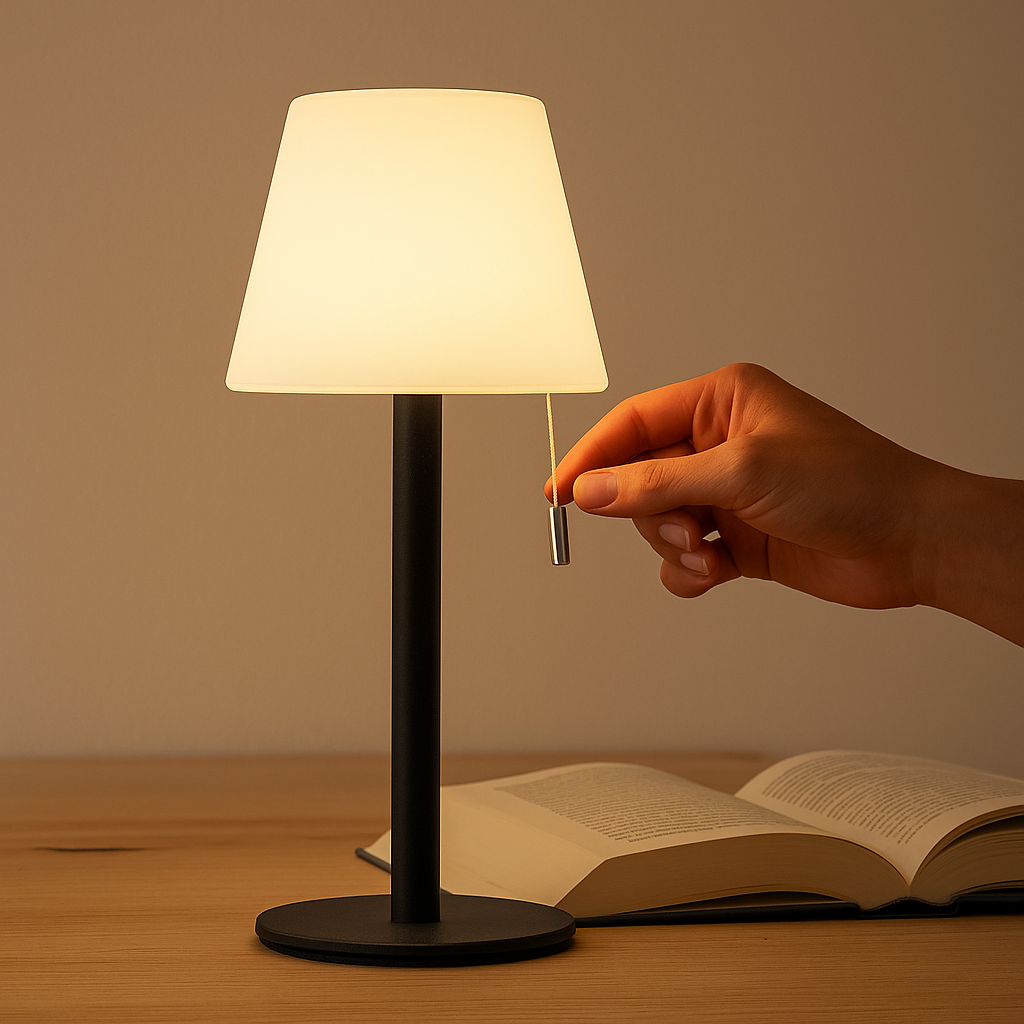 Billy Tischleuchte – dekorative Tischleuchte fürs Schlafzimmer, kabellos wiederaufladbar mit Zugschnur