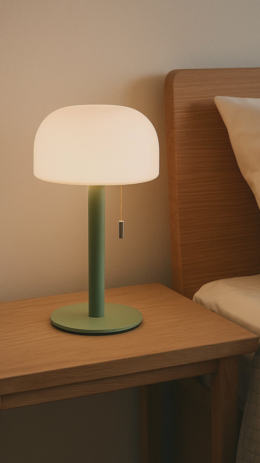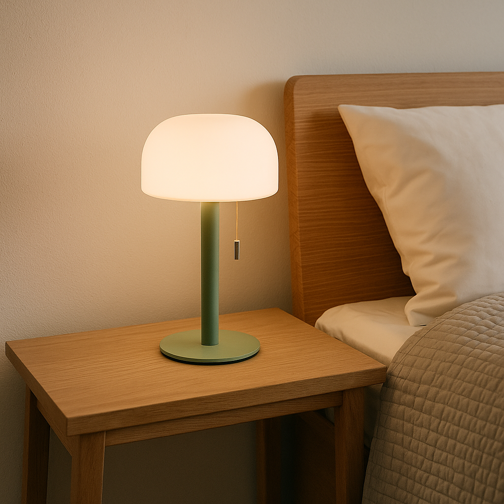 Bobby ist die perfekte Tischlampe fürs Schlafzimmer : Sanftes, blendfreies LED-Licht für entspannte Abende und ausreichend Helligkeit zum Lesen. Dank der Zugschnur lässt sich die Lichtfarbe bequem wechseln, ohne im Dunkeln nach Knöpfen suchen zu müssen.