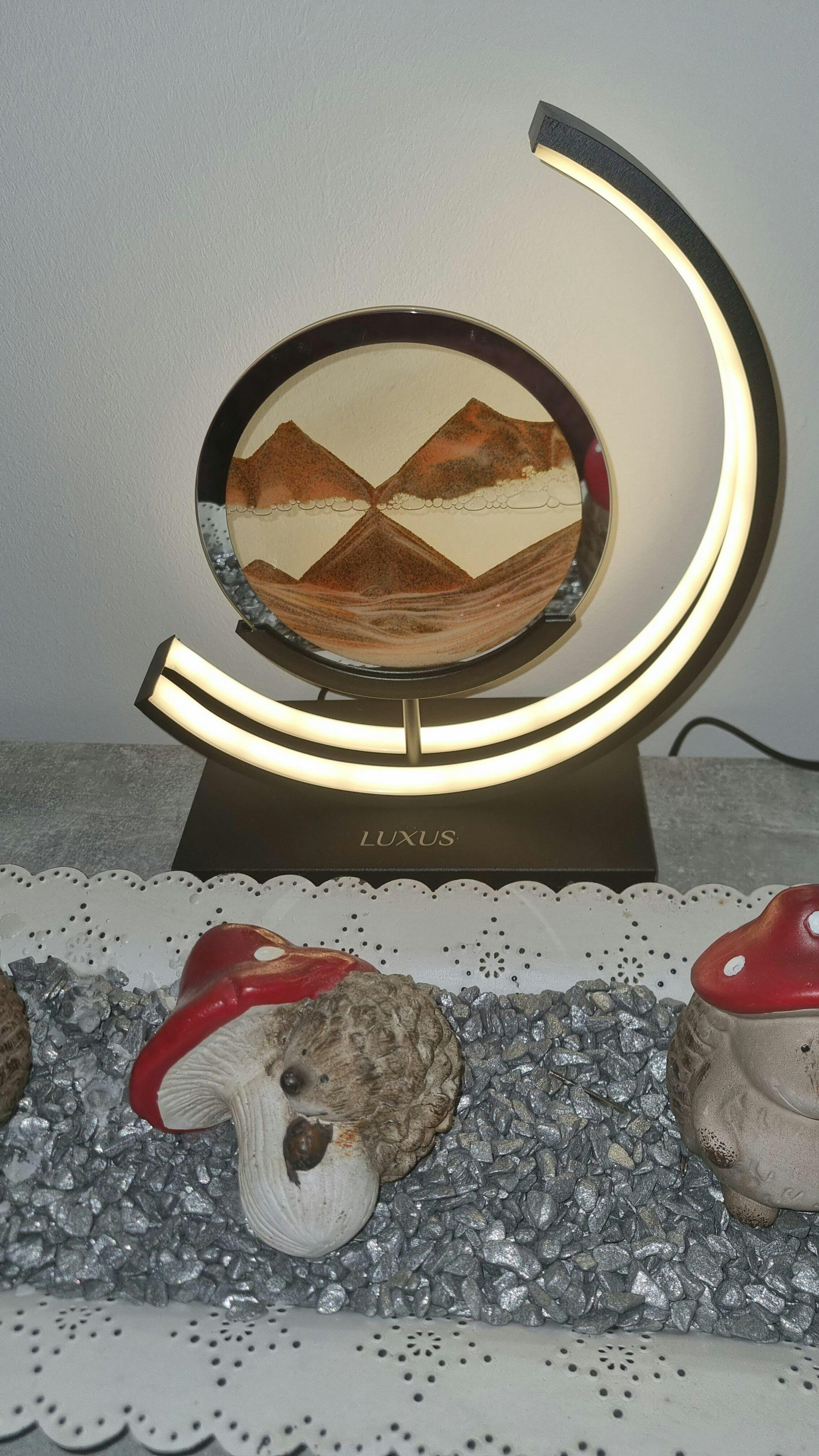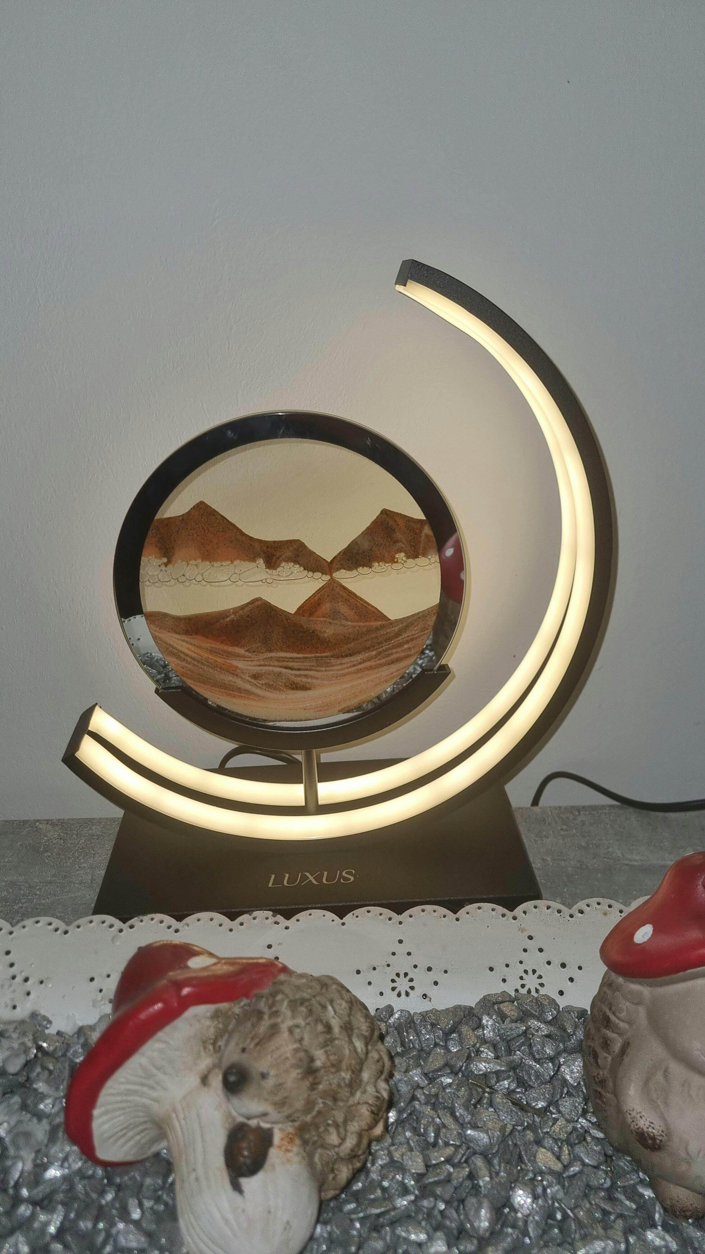 De Luxus Quicksand Tafellamp combineert verlichting met een fascinerend decoratief effect. In de glazen behuizing zie je langzaam bewegend zand dat voortdurend nieuwe vormen creëert. Dit drijfzandeffect is niet alleen stijlvol, maar werkt ook rustgevend en ontspannend.