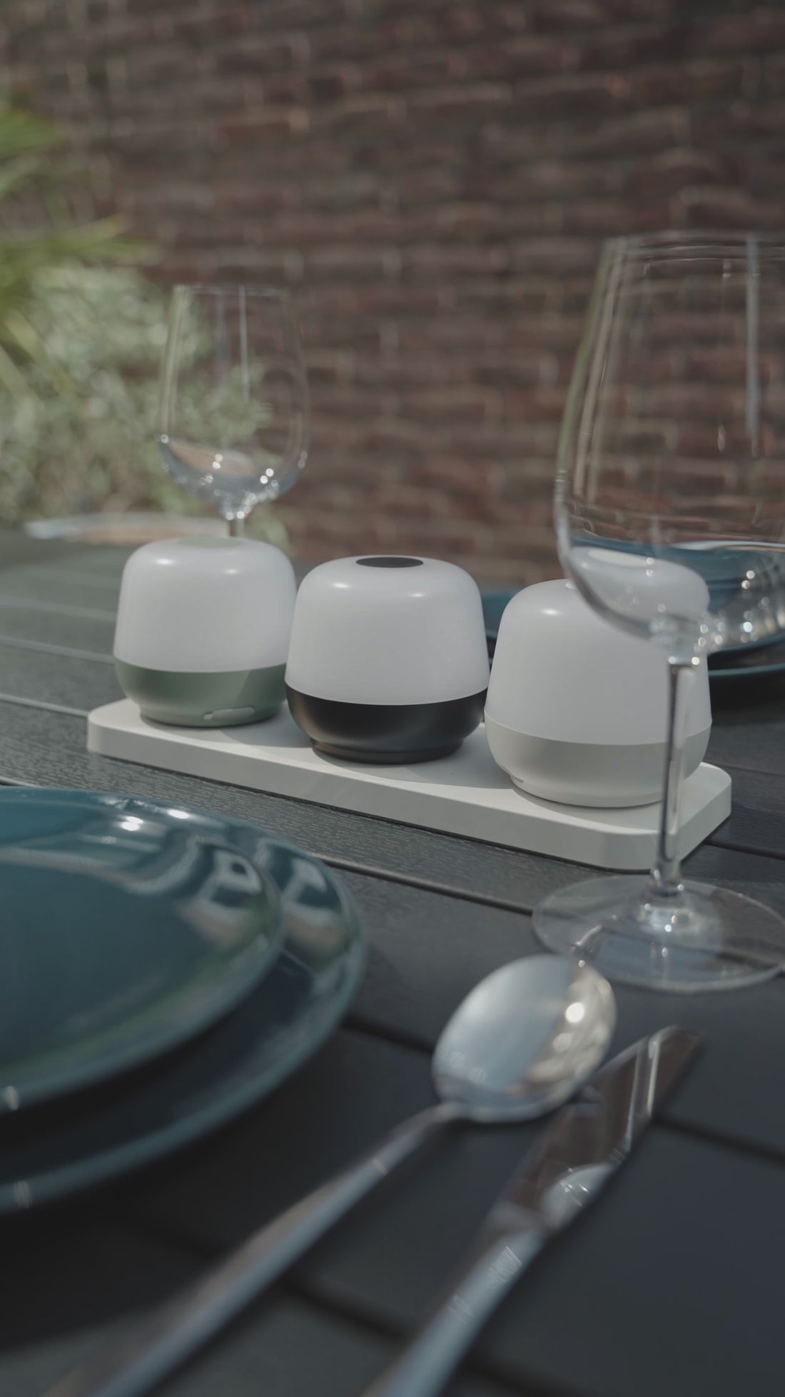 Tafellamp Naxos is een stijlvolle en compacte draadloze lamp, ontworpen voor zowel binnen als buiten. Deze lamp is los verkrijgbaar en eenvoudig op te laden via USB-C. Maar er is meer: Naxos is ook verkrijgbaar als handige set van 3 tafellampen met een bijpassend magnetisch oplaadstation.