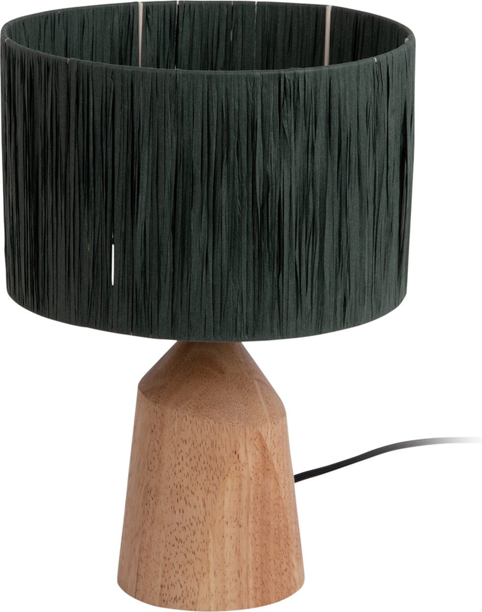 Moderne tafellamp met een houten voet en een jute lampenkap